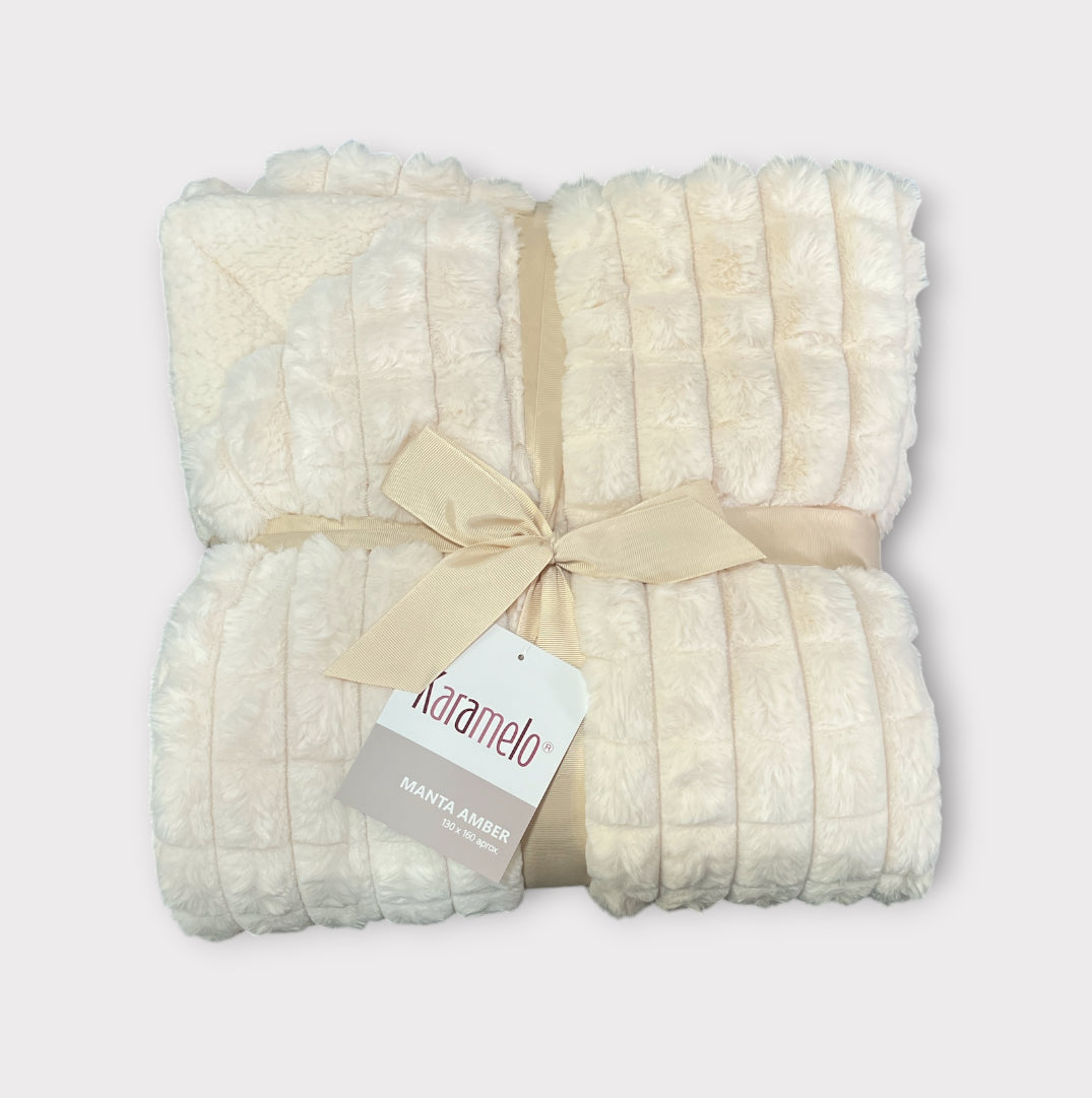 Disfruta de la suavidad y calidez incomparable de la Manta Amber de Karamelo. Fabricada con tejido ultra suave tipo peluche y con interior afelpado, es perfecta para mantenerte cómodo en el sofá, la cama o durante tus momentos de descanso. Su diseño acolchado y elegante color neutro aportan un toque acogedor y moderno a cualquier espacio.