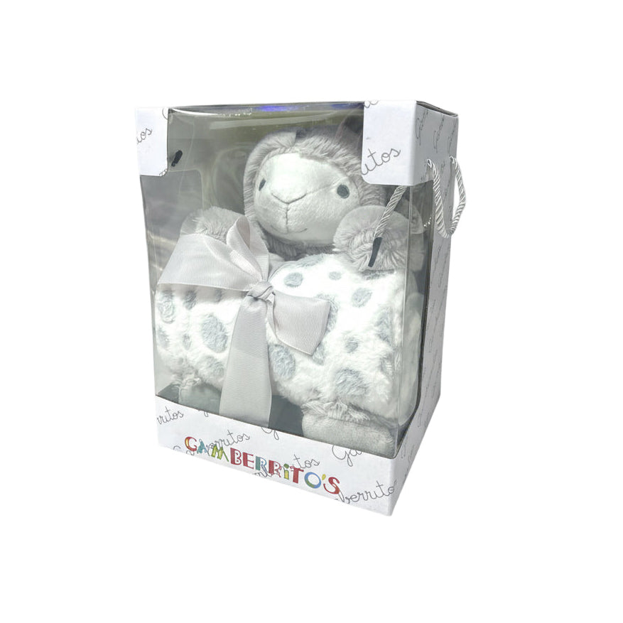 Incluye muñeco de peluche con mantita a juego.